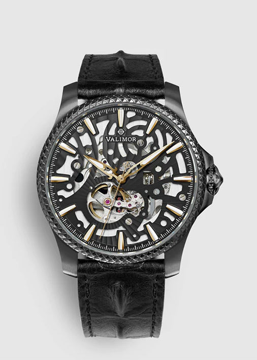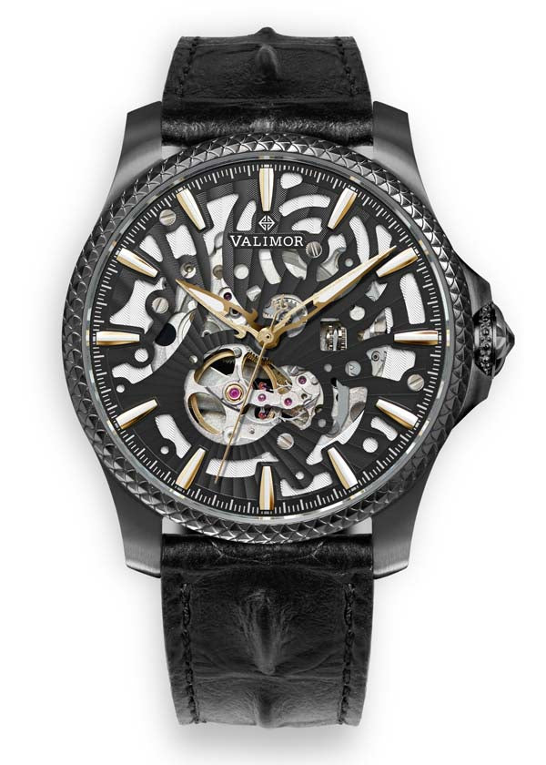 デザインは、伝説的なアーサー王の王冠を想像させる為、最高級の輝きを誇るスワロフスキークリスタル(ブラック)をリューズに使っています。