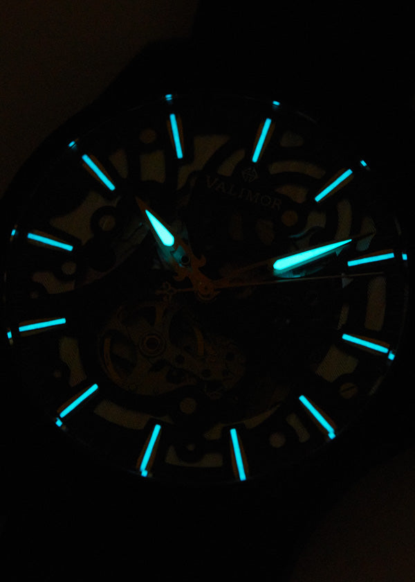 |暗闇の中で輝く文字盤と針