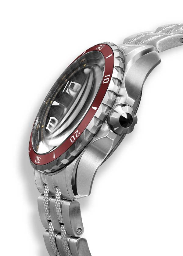 時計のケースとリューズは、宝石をちりばめた伝説の剣の柄にインスパイアされています。一方、ベゼルはキルガーラの竜骨を幾何学的なデザインでシンプルに表現しています。また、時刻とベゼルの両方を調整できるように、人間工学に基づいたデザインになっています。このデザインは、2022年1月にEUIPO Design Patentを取得しています。(EUIPO Design Patent #008778161-0001)。