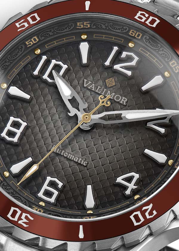 バリモアはアーサー王物語からインスピレーションを受けた唯一無二のデザインが特徴的ですが、この新商品はその特徴を良く表現しています。ドラゴンのウロコのエングレービング、中世からタイムスリップしてきたようなオリジナルの文字盤、そしてアーサー王物語では欠かせない剣の針がとてもユニークなデザインです。新しく完成した時計は本当に壮観で、その卓越した耐久性と実用性は、バリモアの哲学を良く表しています。