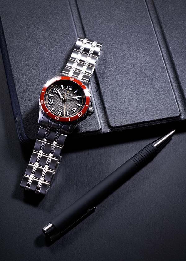 キルガーラは待望のダイバーズウオッチとして、防水機能(10気圧まで)を備えています。これまでよりも、幅広いシーンでお使いいただけます。