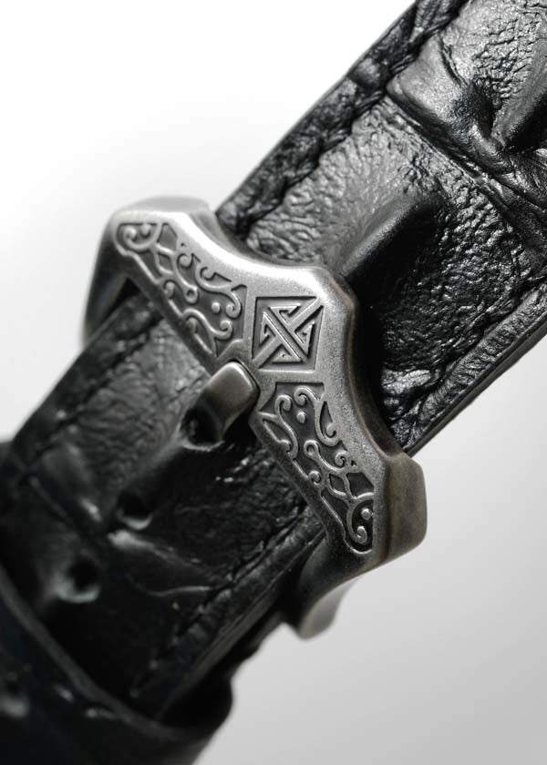 龍の尻尾をイメージしたオリジナルのストラップデザインです。素材は牛革の本革、トップグレインレザー。耐久性があり、ソフトで高品質な肌感です。すべてのストラップには、剣の柄に影響されたオリジナルのバックルが付いています。