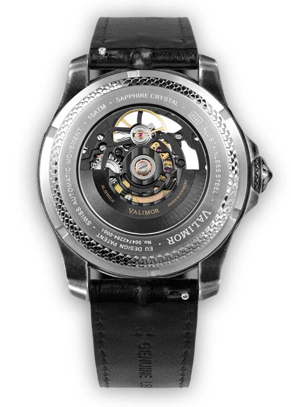 繊細な彫刻を施したステンレススチール「316L」。ステンレススチールは耐食性に優れ、錆びにくいです。肌が敏感な方でも気にせず着用できます。ユニークでありながらクラシックな時計ケース。長年使いこんだようなエイジング加工がされており、鎧をイメージしています。
