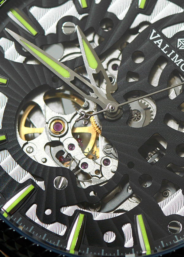 剣をイメージして作られた針。針は高精度のダイヤモンドカットを使用しています。針や文字盤に夜光加工がされている為、暗闇の中で光ります。